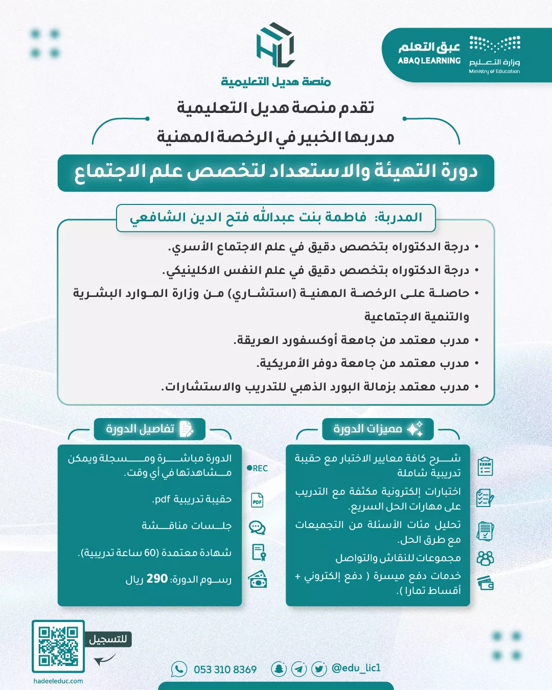 دورة التهيئة والاستعداد لتخصص علم الاجتماع (٢٥-٥-١٤٤٧)